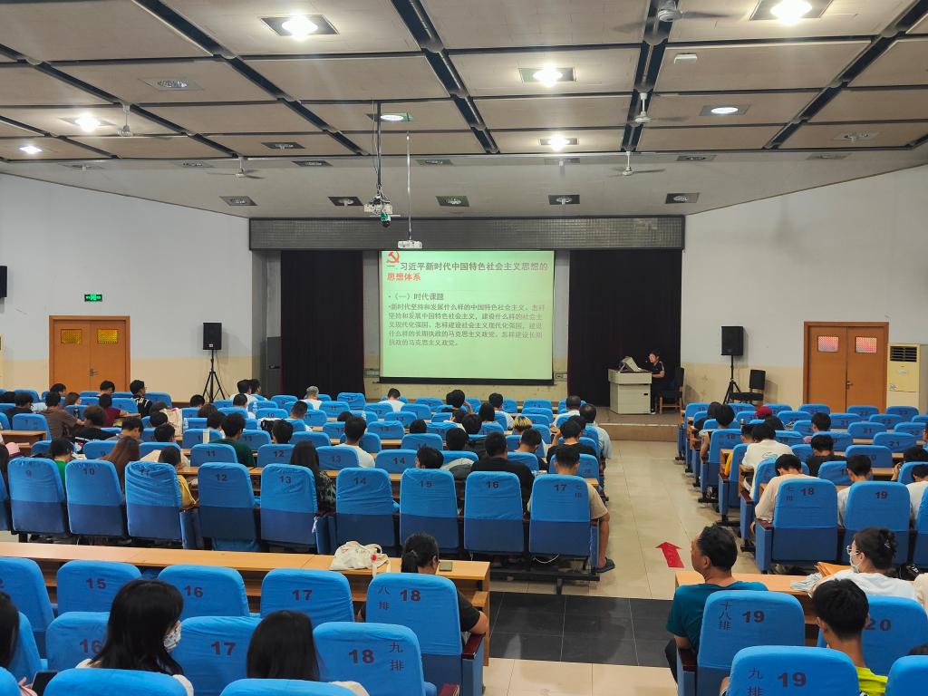 王立红老师围绕习近平新时代中国特色社会主义思想的思想体系,从“十个明确”“十四个坚持”“十三个方面成就”等方面,深入浅出地为全体师生党员阐述了习近平新时代中国特色社会主义思想的主要内容。