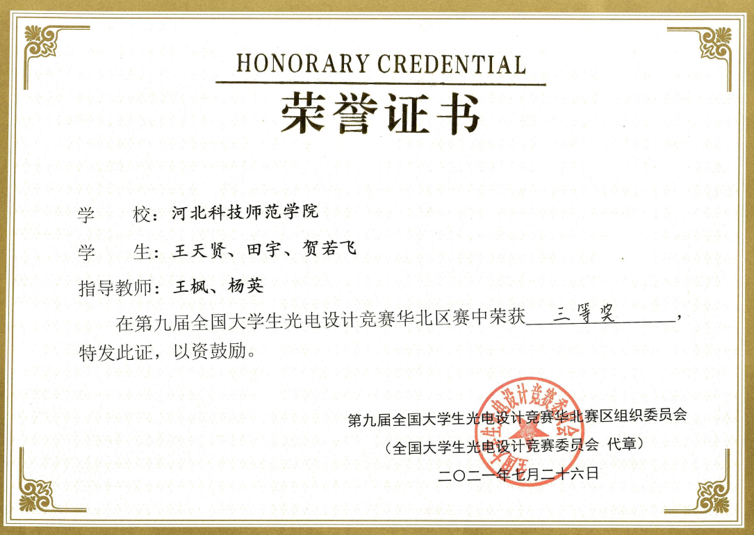 近日,由中国光学协会主办,燕山大学承办的第九届全国大学生光电设计竞赛(华北赛区)在燕山大学举行。来自北京、天津、河北、山西、内蒙古的31所高校的229支队伍共计1033名师生参赛。永利集团官网机电学院由3名学生组成了1支代表队参加了此次比赛,最后获得集体三等奖一项。