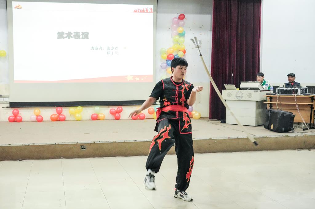 演出在春晖艺术团带来的形体舞蹈《花好月圆》中渐入高潮,舞者们以柔美的身姿和优雅的动作,为观众呈现了一幅幅美好的画面。随后,机电学院的学生屈士博和张龙浩带来的武术表演,更是将现场气氛推向了顶点。