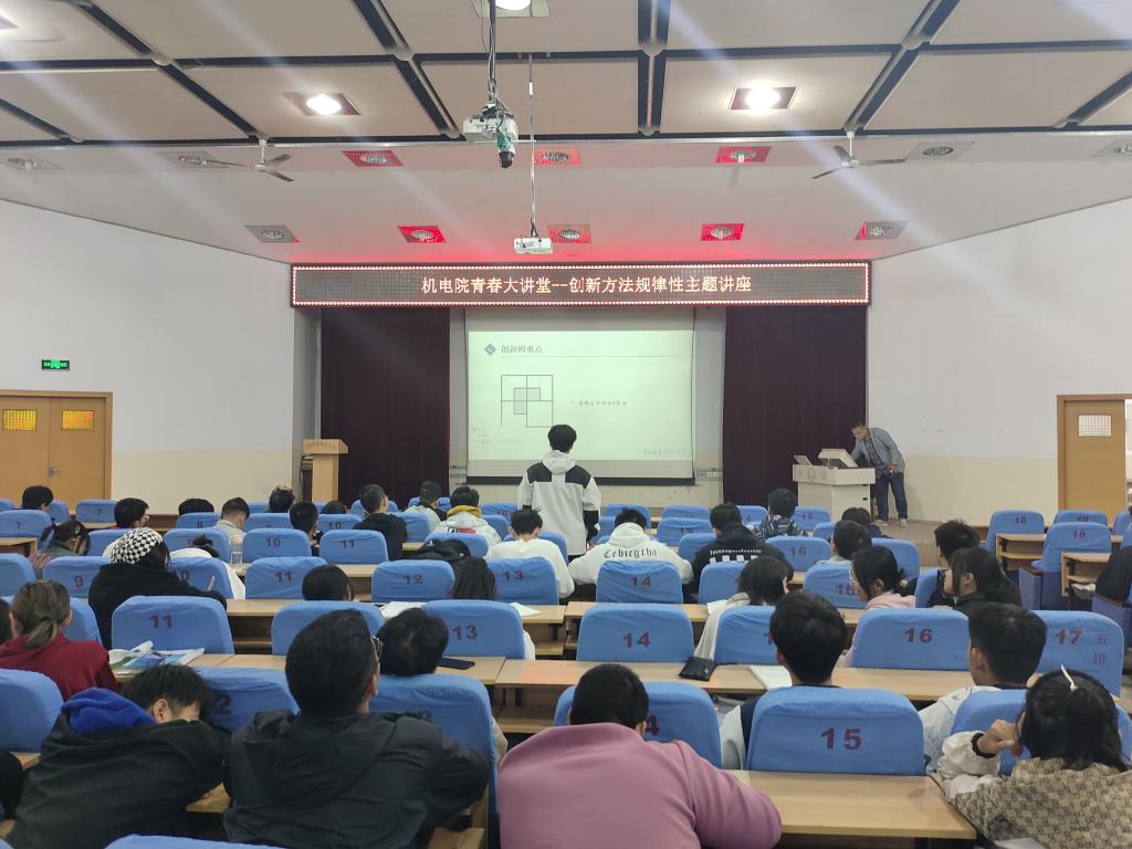 2023年10月20日,304永利集团登录入口召开“青春大讲堂—创新方法规律性”主题讲座,讲座由机电学院杨阳老师主讲,学院320名同学参加了此次讲座。